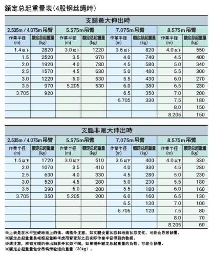 起重能力:2.82t x 1.4m 最大作业半径:8.205m x 0.15t 最大起升高度:8.7m